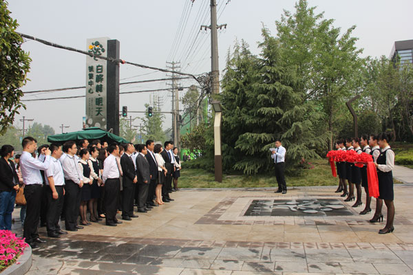 公司员工精神饱满的参加展示区开放仪式。