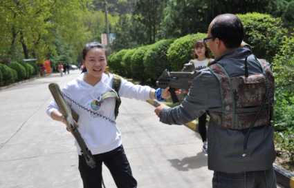紧张的节奏、刺激的对抗,真实的场景、全身心的投入……一场激烈的真人CS大战正在蓝田汤峪湖森林公园展开。