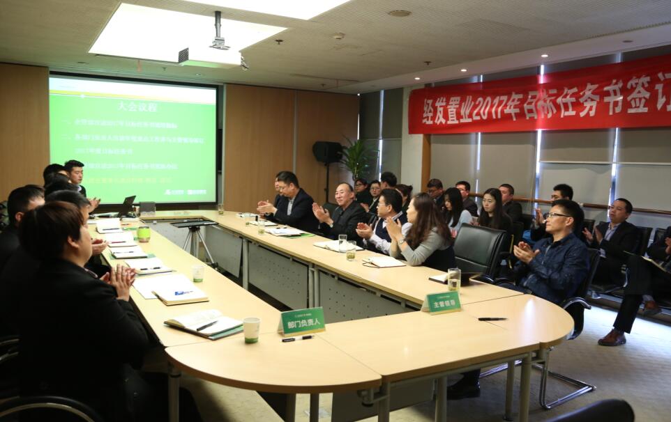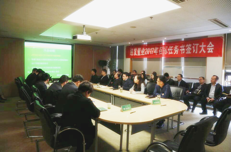 2月28日下午,经发置业中层以上管理人员及公司各部门员工代表,在第一会议室召开了2017年度目标任务书签订大会。此次会议宣读各公司各部门年度重点工作目标,加强了工作目标的计划性,使各部门对年度工作任务更加清晰、明确。