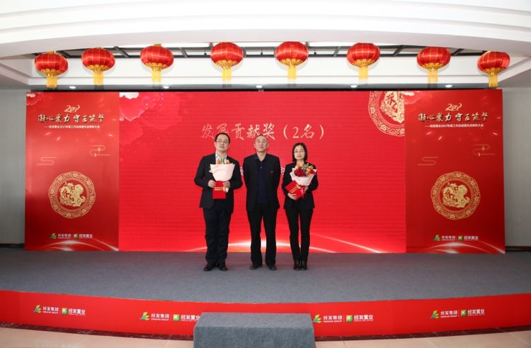 表彰环节中,对2017年先进工作者进行了表彰、奖励。本次表彰会共设10个奖项,共70余位优秀员工站上了光荣的领奖台,为大家树立了榜样。站在领奖台上每一位伙伴都在工作中积极进取,充分的发挥着自己能量,是大家学习的榜样,榜样的存在,总是能赋予我们每个人满满的正能量,激励自己与伙伴在新的一年里取得更大的成绩,创造更辉煌的成绩,让我们向着更好的方向努力,为经发置业更美好的未来不懈奋斗。
