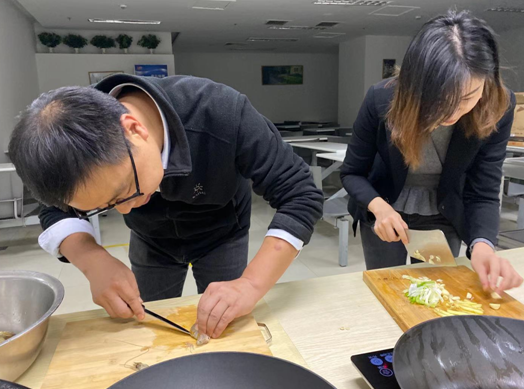 小伙伴们大显身手,个个展露出精湛的厨艺。烹饪大师主勺、厨艺新人搭手,在相互配合中,一道道色香味美俱全的可口佳肴新鲜出炉,金汤肥牛、椒麻鸡、糖酥里脊、香辣虾4道香嫩可口的家常菜让人直咽口水,同事们争相品尝分享。