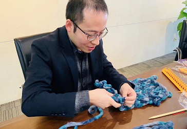 员工们各自选择了心仪的彩色毛线,在手工老师的指导下,认真学习了棒针编织和借助辅具编织两种织法,为自己或家人编织一条温暖的围巾。大家你追我赶,相互分享自己的针线活经验,现场气氛其乐融融。几位男同事也展现了自己细致入微的一面,虽然不擅长手工活,但勤能补拙,他们耐心的向老师反复请教,细心地将毛线缠绕在辅具上,所编织出来的围巾受到了小伙伴们的一致好评。